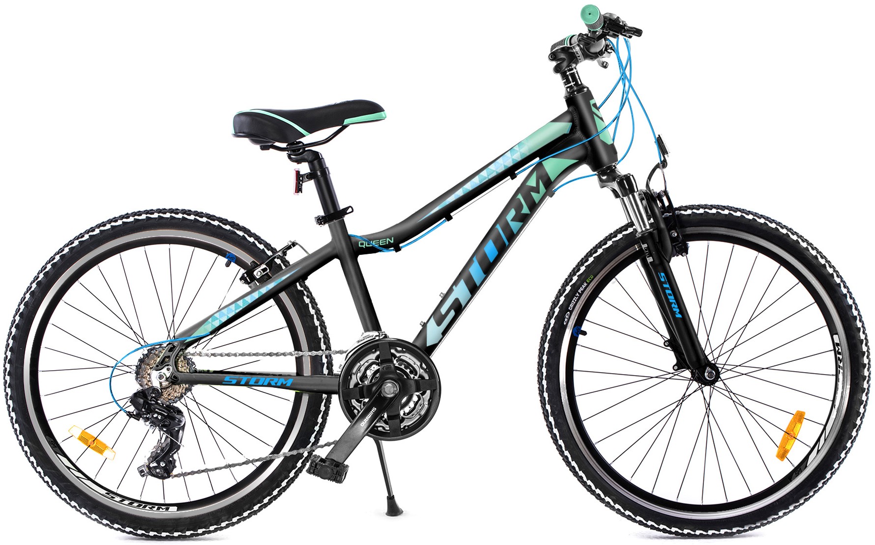 W celu zapewnienia odpowiedniej jakości hamowania w niemalże każdych warunkach Storm Queen został wyposażony w hamulce typu V-BRAKE. Amortyzowany widelec Zoom o skoku 63 mm wygładzi wszelkie nierówności znajdujące się na drodze, a także poradzi sobie w terenie.