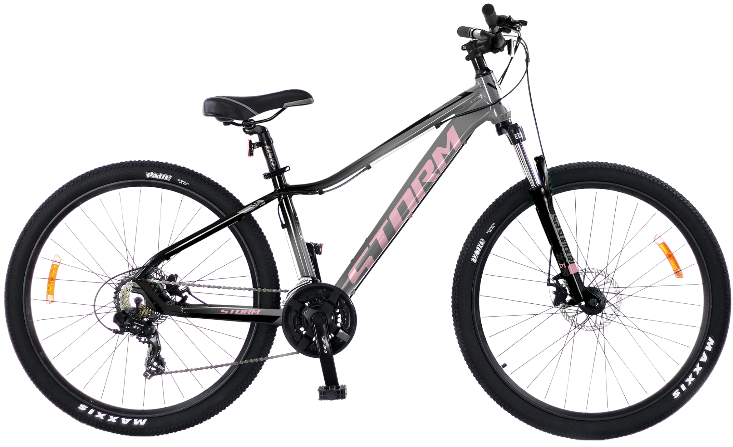 W celu zapewnienia odpowiedniej jakości hamowania w niemalże każdych warunkach Storm Shark 1.0 został wyposażony w mechaniczne hamulce tarczowe. Amortyzowany widelec SR SUNTOUR XCE o skoku 100 mm wygładzi wszelkie nierówności znajdujące się na drodze, a także poradzi sobie w terenie.